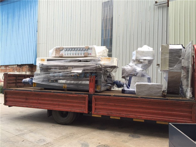 创世强一台异形磨边机、一台钻孔机两台、9磨头直边机,发货到广西贺洲。