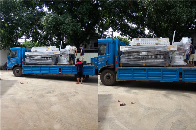 创世强两台9磨头直边机一台异形磨边机,发货到浙江诸暨市。