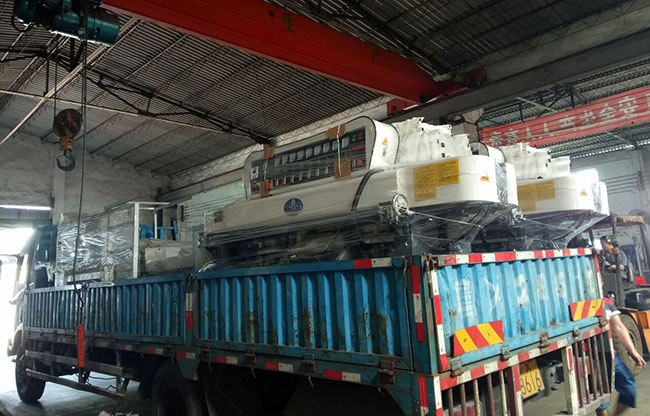 两台CSQ-9玻璃直线磨边机和一台CSQ-0222玻璃钻孔机发往湖北